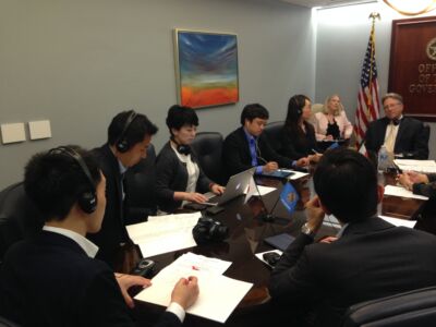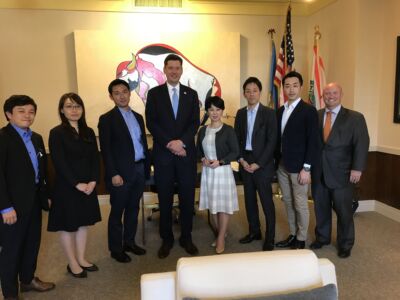 続いて訪問したオクラホマ州では、ジョー・ドーマン元州議会議員のホストで、プログラムを実施しました。ジェームス・ウイリアムソン州務長官、全米主要都市で最も若手の市長であるオクラホマシティのデービッド・ホルト 市長と和やかに意見交換を行った他、オクラホマ州の公共教育施設であるグレートプレインズテクノロジーセンターを視察し、高校中退者や経済的に困窮した世帯の子供たち、社会人のためのキャリア教育と資格取得支援が充実した教育環境で行われている様子を目の当たりにしました。同施設訪問の様子は、地元テレビ局KSWOの夕方のニュースで報道された他、地元紙Lawton Consititutionにインタビュー記事が掲載されました。
