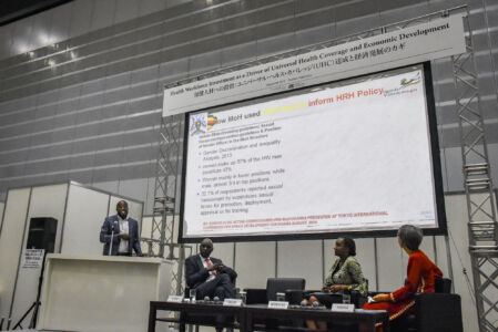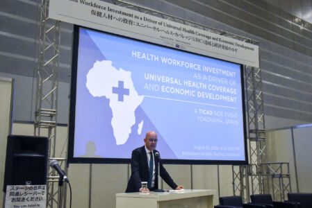 日本国際交流センター(JCIE)とイントラヘルス・インターナショナルは、2019年8月28日、パシフィコ横浜展示ホールにて、第7回アフリカ開発会議(TICAD7)公式サイドイベント「保健人材への投資:UHC達成と経済発展のカギ」を開催しました。日本や、アフリカ諸国をはじめとする世界各国の政府、NGO、大学・研究機関、国際機関などから120名以上の方の参加を得て、ユニバーサル・ヘルス・カバレッジ(UHC)を達成する上での保健人材への戦略的な投資の重要性と、それによって社会にもたらされる多様な利益、保健人材の開発を後押しするために今必要とされることなどについて、議論しました。